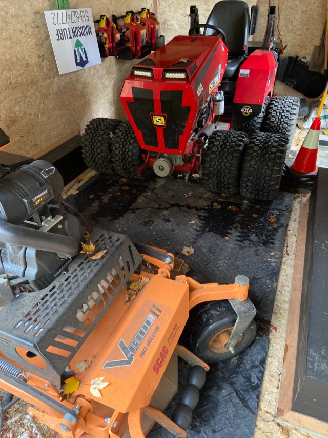 Our two main workhorses. Scag V-Ride and Stiener 450
